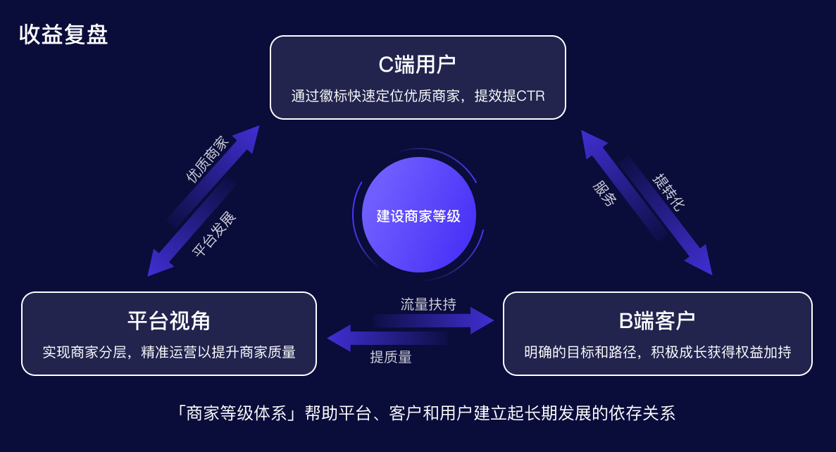 我們需要建立C端用戶信任,傳達商家等級的重要性,提升用戶對商家的認可度和信任度,幫助用戶減少決策成本,同時增加商家的自豪感和動力,促進商家與用戶,商家與平臺之間的價值轉化。