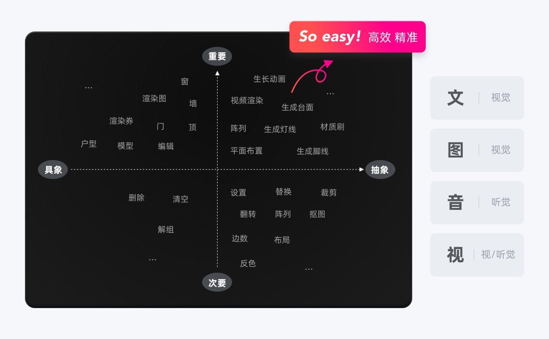 根據美國哈佛商學院有關研究人員的分析資料表明,人的大腦每天通過五種感官接受外部信息的比例分別為:視覺83%、聽覺11%、嗅覺3.5%、觸覺1.5%、味覺1%(數據暫不涉及短視頻直播領域)在群核體系下的產品,圖和文分別是有哪些?