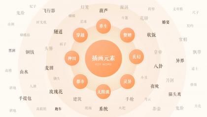 圖形的設(shè)計是最容易識別和產(chǎn)生共鳴的。在插畫元素的提煉上,為了能夠與小說網(wǎng)文氛圍結(jié)合的更緊密,我們以小說類型為劃分維度得出了一系列的具象的聯(lián)想關(guān)鍵詞。