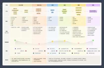 畫(huà)出用戶旅程圖是我特別喜歡的一個(gè)工作方法,可以與產(chǎn)品、研發(fā)、市場(chǎng)團(tuán)隊(duì)一起共創(chuàng),優(yōu)化產(chǎn)品。
