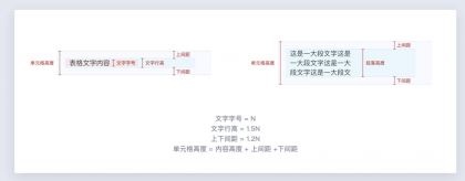 在開發同學的眼中,單元格高度=內容高度+上間距+下間距,在實現設計稿時,通常也是按照這個方式來寫的,而不是像設計同學一樣按照文字的尺寸來計算間距。其中,文字行高建議設為字號的1.5倍,上下間距設為字號的1.2倍。