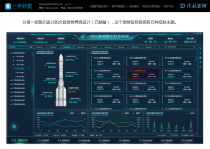 也分享一組我們給某單位設(shè)計的火箭發(fā)射界面設(shè)計(已脫敏),這個發(fā)射監(jiān)控系統(tǒng)有五種皮膚主題,分別應(yīng)用不同的場景,簡約版、科技藍(lán)、軍隊?wèi)?yīng)用、慶典重大時刻...