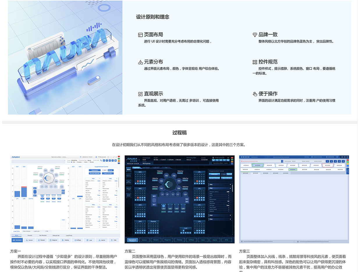 品牌一致:整體風格以北方華創的品牌色藍色為主, 突出品牌性。