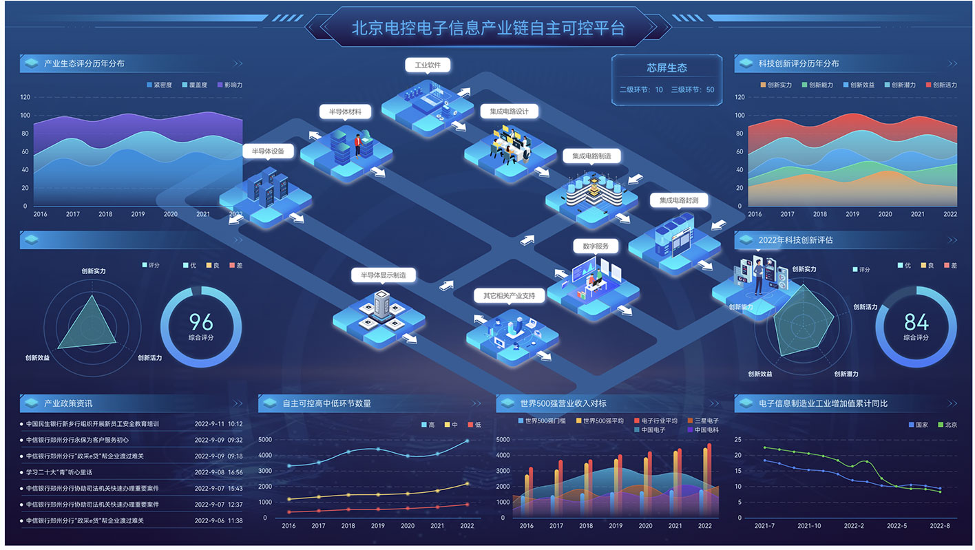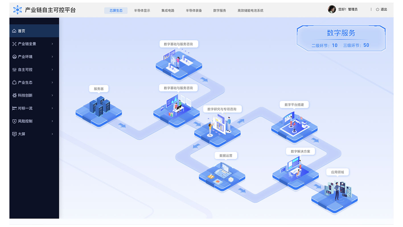 項目背景:產業鏈自主可控平臺是指一個集成了多方參與者的平臺,旨在實現對整個產業鏈的自主控制和管理。該平臺通過整合各個環節的資源、技術和信息,以實現產業鏈的協同發展和自主創新。過建立產業鏈自主可控平臺,可以促進各參與者間的協同合作,加強產業鏈的自主控制能力,提高整體競爭力和創新能力,實現更加可持續和穩定的發展。蘭亭妙微團隊首先設計了一套高度定制化的動態數據可視化儀表板。