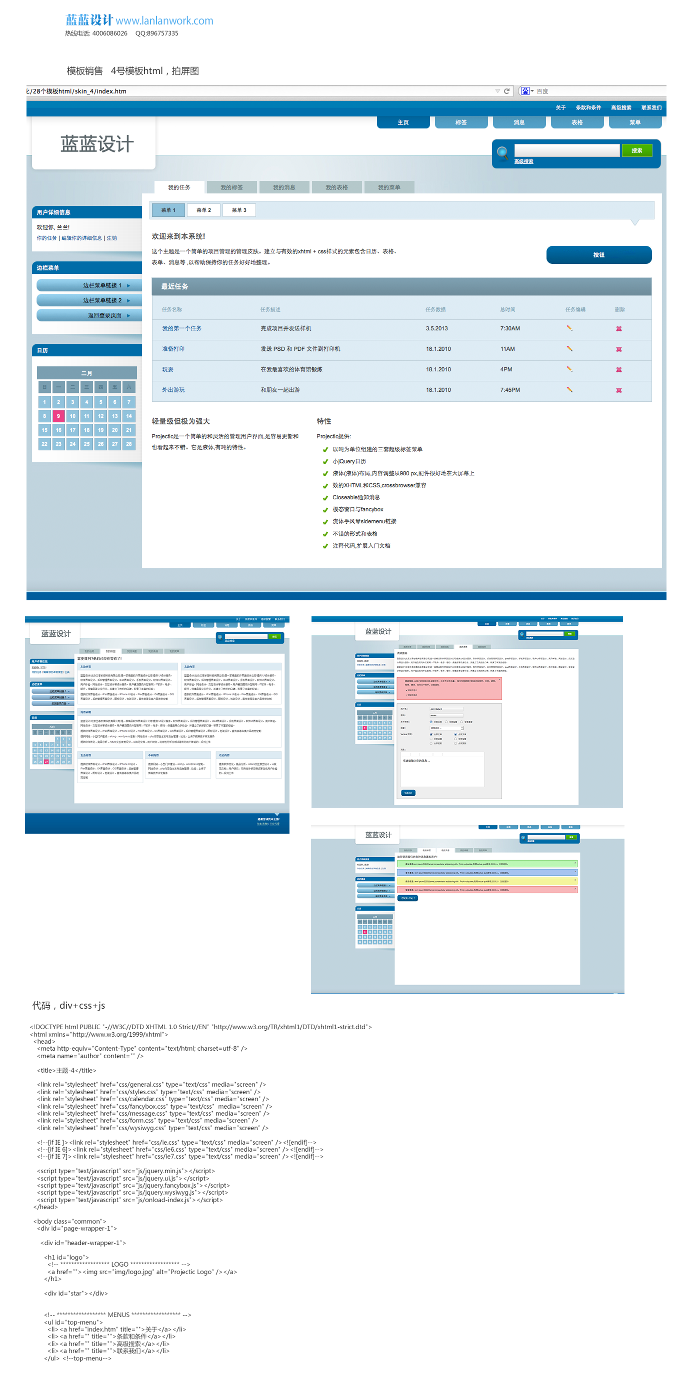 內容:包含列表頁、輸入頁、目錄頁共3頁html、images/css/div