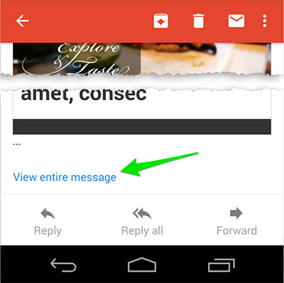 下面這張截圖里,你能夠看到用戶是如何通過點擊一個鏈接查看整個信息:這使得用戶不必閱讀全部郵件。