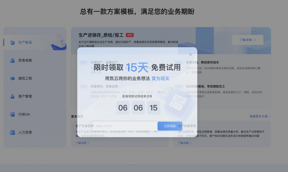 • 功能場景化表達:別只列 “CRM 管理”,要講 “打通客戶、商機、銷售全流程,讓業績增長看得見”(案例中 “精品模板” 板塊的描述邏輯),把功能翻譯成用戶的 “業務收益”。