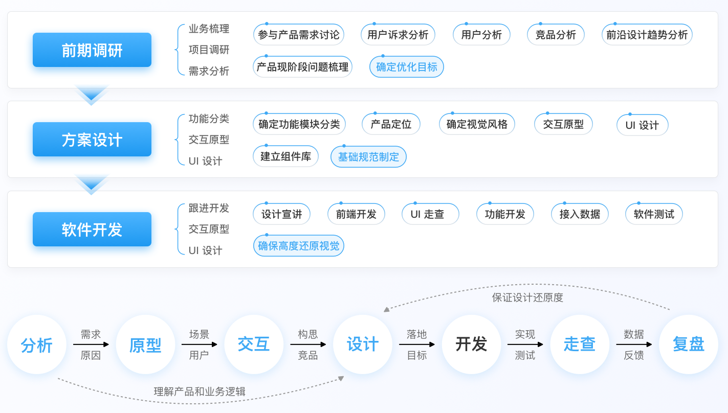UI 設計效果保真實現、定制化組件開發、后端功能開發、數據接入及聯調,單頁應用(SPA)構建、多端應用(H5、小程序等)適配開發、狀態管理與路由配置、前端性能優化。
