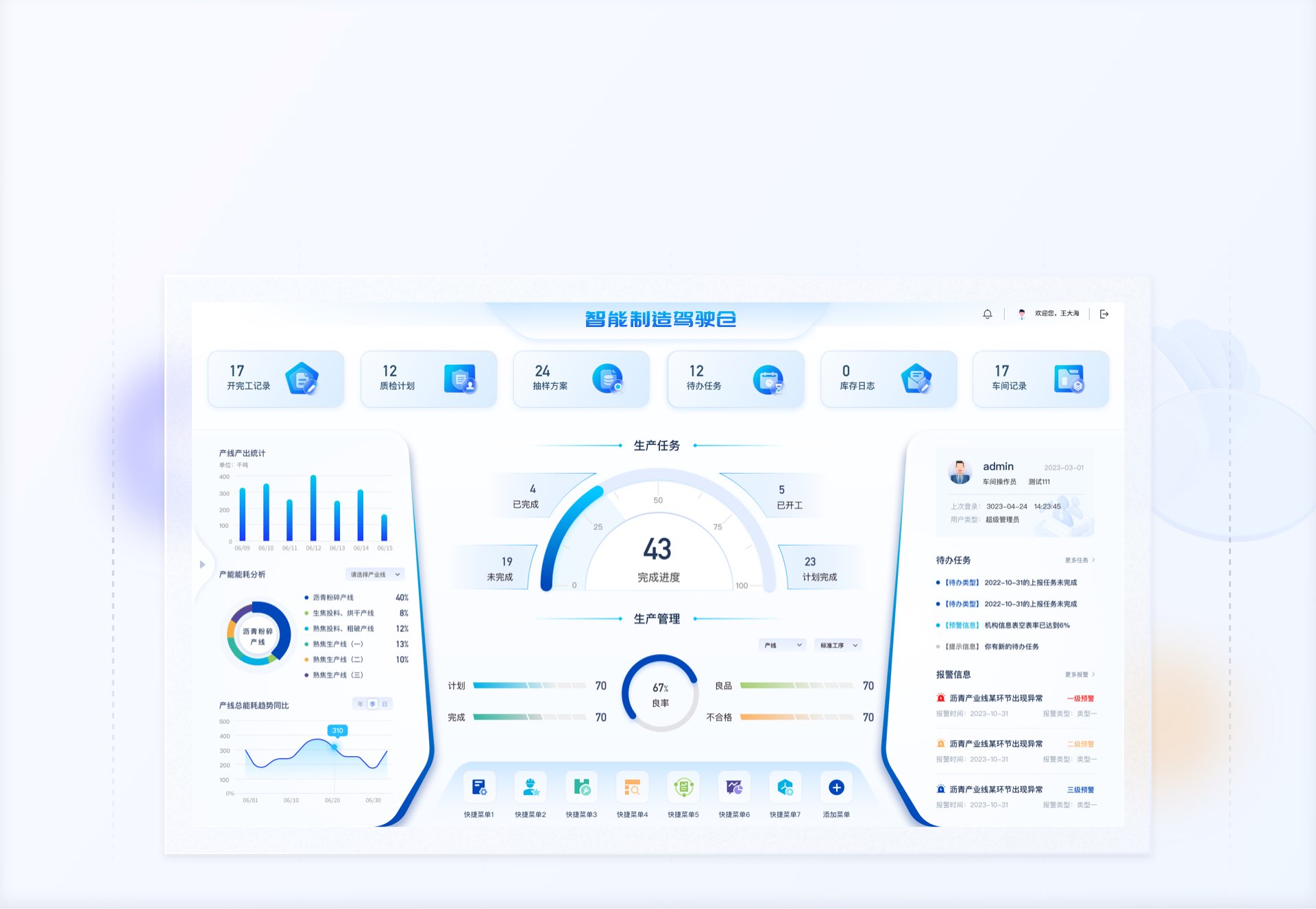 菜單導(dǎo)航區(qū)疊加工廠作業(yè)場景圖,突出軟件的主題同時(shí)豐富頁面。